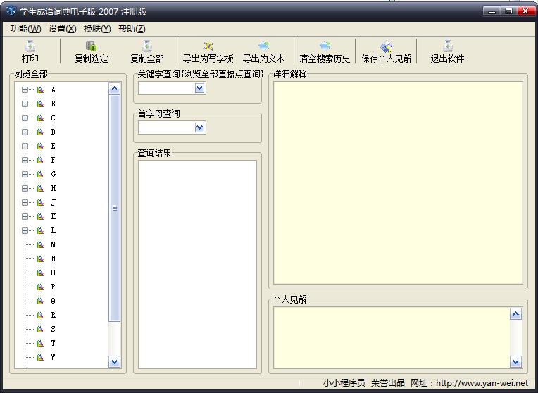 『学生成语词典电子版』可查询常用成语共计13000条,详细解释包括成语的拼音、典故、出处和例子。软件界面美观,操作灵活,查询快速。