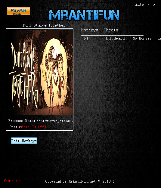 饥荒联机版三项修改器是由[MrAntiFun]为沙盒生存类游戏《饥荒联机版》制作的一款最新辅助工具。饥荒联机版三项修改器使用简单,有需要的朋友赶紧下载吧!