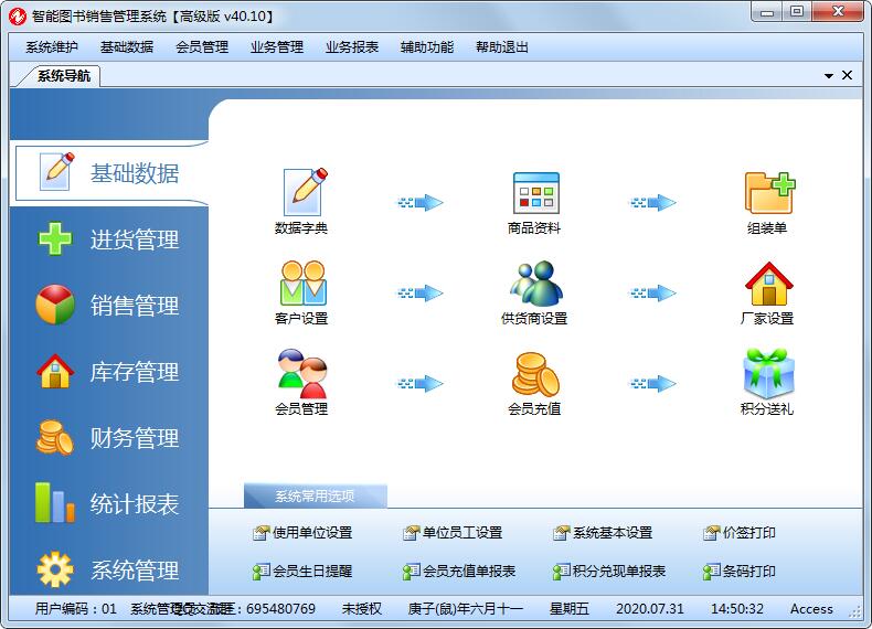 智能图书销售管理系统是一款相当不错的销售管理软件,拥有销售管理系统、库存管理系统(仓库管理系统)和报表系统等子模块。其中报表功能和查询功能最为出色,所有功能在用户需要的使用地方自然体现,不用打开多个窗口重复查询。