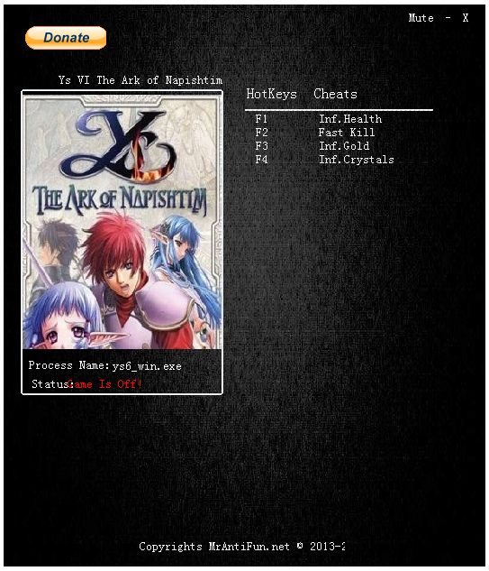 伊苏6纳比斯汀的方舟四项修改器是该款同名动作角色扮演类游戏——《伊苏6:纳比斯汀的方舟》的辅助工具。这款伊苏6纳比斯汀的方舟修改器可进行无限生命、快速击杀、无限金等4项操作设置辅助,让你更轻松的进行游戏体验!