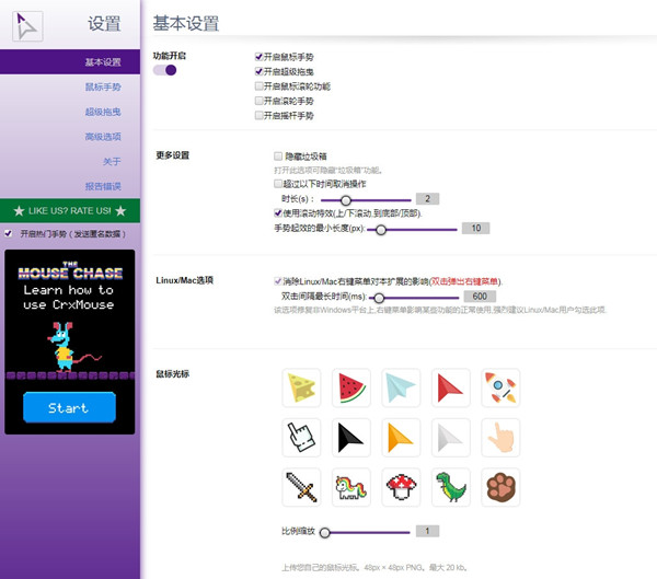 CrxMouse(chrome鼠标手势插件)最新版是一款Chrome鼠标手势扩展插件,软件可以充分、方便、快捷地发挥鼠标在Chrome浏览器中的操作方式,让鼠标完成大量扩展手势功能,包括鼠标手势,超级拖拽,滚动手势,摇杆手势,平滑滚动,标签页列表等功能,非常实用哦!