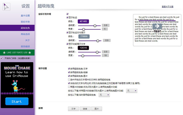 4、可自由修改常规设置、超级拖拽等功能,关闭即可保存。