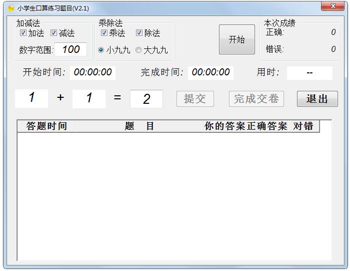 适合小学生口算用的练习题目,操作简单,只有一个页面,带数据统计。