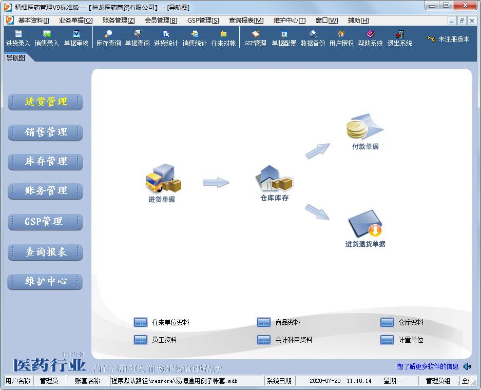集进货、销售、库存、财务、委托、受托、订单一体的综合性管理软件。 内含标准化GSP管理,对含麻磺碱、处方药、特殊药品可进行限量管理,并可设置对含麻磺碱、处方药、特殊药品等药品进行授权销售,并可对药品进行实名销售管理。