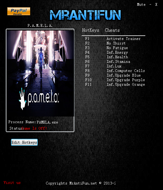 帕梅拉十项修改器,修改游戏十项属性,包括无限生命,无限能量,不会渴等等,喜欢的朋友快来下载吧。