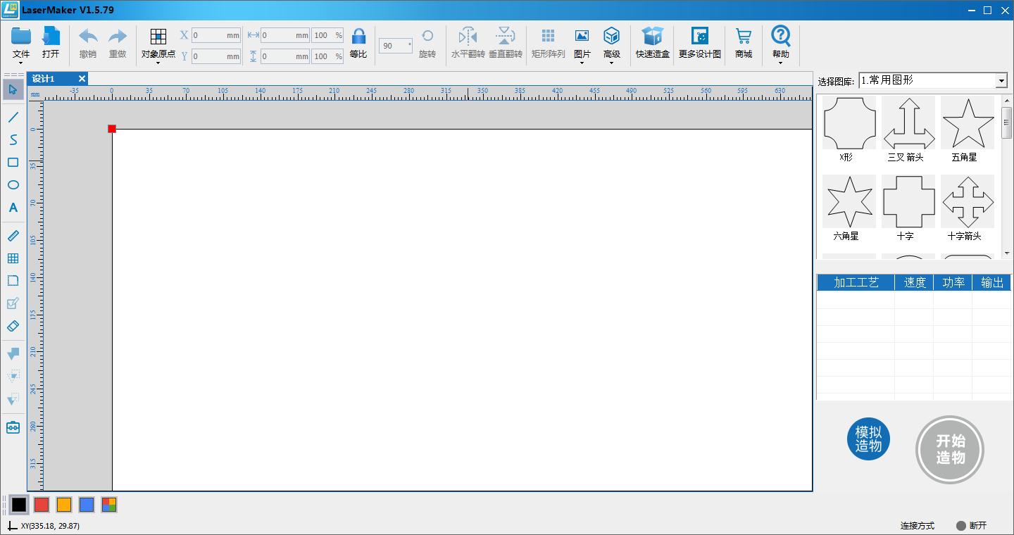 LaserMaker是一款激光切割设备管理软件,使用该软件能够帮助用户轻松绘制出各种激光切割图片,为用户的激光切割设备使用提供了帮助,软件支持DXF、AI、PLT、JPG、BMP等图片格式,满足用户的各种激光绘图功能需求,轻松切割出想要的形状。