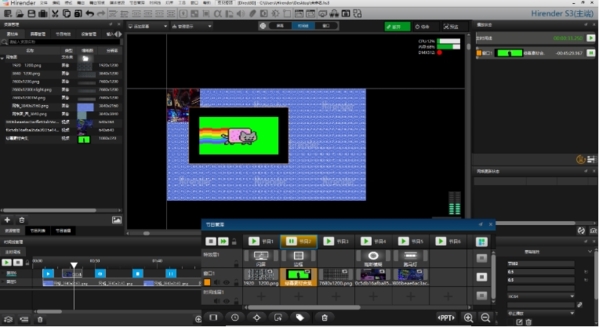 Hirender S3的资源管理包含素材库、屏幕管理、节目特效、设备管理、输入控制以及图片一键优化等功能。可以在素材库里面添加视频、图片、PPT、采集卡、NID网络屏幕、字幕等,并实现对素材的删除、添加、排序等操作。屏幕管理可查看屏幕信息和状态。节目特效可增加素材的灵活多变性。设备管理可查看设备的状态和处理器占用。输入控制可以编辑普通控制和MIDI控制等。节目列表功能方便节目便捷快速浏览。右下角的一键优化按钮开关可以实现对图片的优化。节目插播可以辅助时间线使用,方便临场节目修改,也可实现现场摄像等信号切换(导播)。