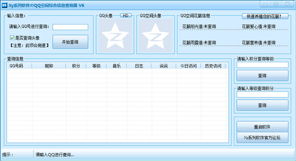 这款QQ空间综合信息查询器可以查询qq空间的所有信息,包括头像、空间等级积分、qq花藤信息等,非常好用。