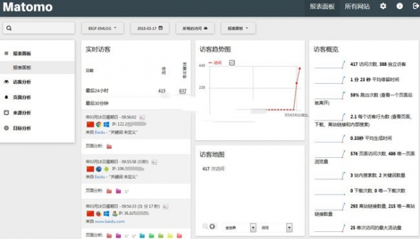 Matomo是一个专业的网站统计工具,用户可以使用这款工具获得无限数量的网站、用户和部分,工具对您存储的数据量也没有限制,工具会通过一个安全、透明的平台,帮您将风险降至最低。该工具将为您提供最佳使用方法的指导,以节省您的时间和金钱。