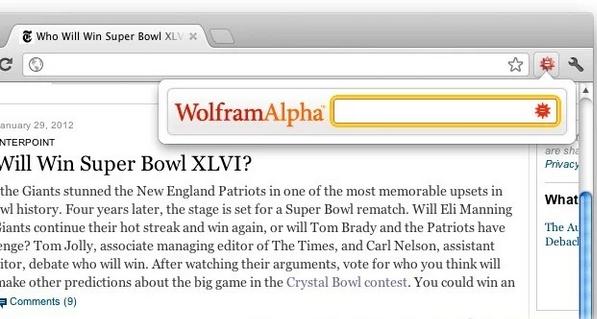 2、打开一个需要解决问题的网页,在Chrome浏览器的右上角点击Wolfram|Alpha插件的按钮启动搜索功能弹出窗口。
