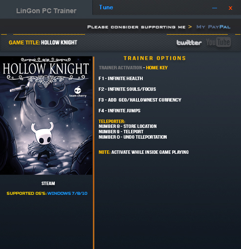 空洞骑士九项修改器,包含九项功能,下载解压缩,运行游戏,开启游戏修改器即可。