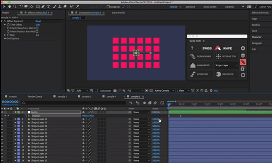 Swiss Knife插件是非常实用的一款插件,支持多个版本的AE软件,包括After Effects CC2019,After Effects CC2018,After Effects CC 2017等等,使用起来很方便,多个实用工具任你使用,有了它可以让你轻松制作MG动画。