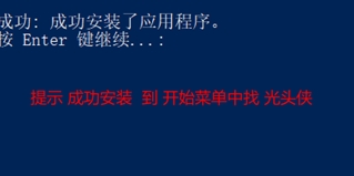 提示成功安装到【开始菜单】中找光头侠。