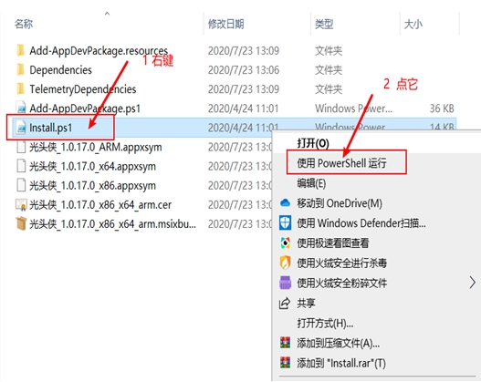 右键【install.ps1】文件选择【使用PowerShell运行】。