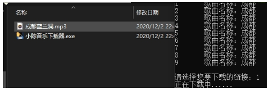 输入歌名后按回车,输入相应歌曲序号后按回车,即可下载到软件在的目录里。