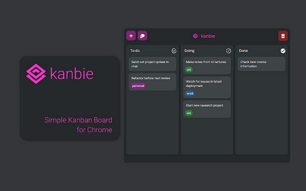 Kanbie是一个简单的、黑色主题的看板工具,你可以用它来管理你的待办事项。