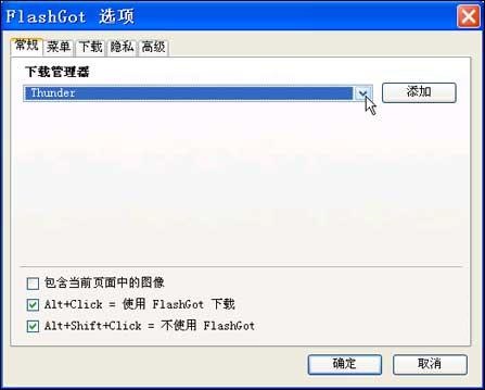 用户可点击FlashGot关联菜单》 FlashGot选项》更多选项,在FlashGot选项卡中的“常规”选项卡中选择“下载管理器”,查看外部下载软件是否在这个列表当中,若不在,则可以点击右侧的“新增”按钮,进行手动添加。