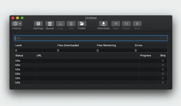 SiteSucker的操作非常简单,输入网站网址,敲回车就开始下载了,而且自定义设置颇为丰富,如果你在一次Download过程中暂停或停止下载,可以在History菜单里找到记录接着进行下载,下载过程里可以对列表里的文件采取跳过操作。