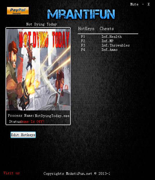 今日不死四项修改器,可获得无限生命,无限子弹等四项实用功能,需要的可以来看下哦。
