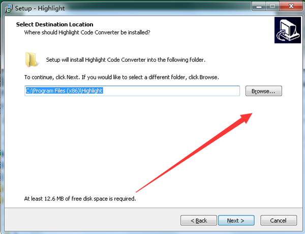 2、接着就可以看到默认安装位置在C盘,我们点击“浏览”来更改位置;