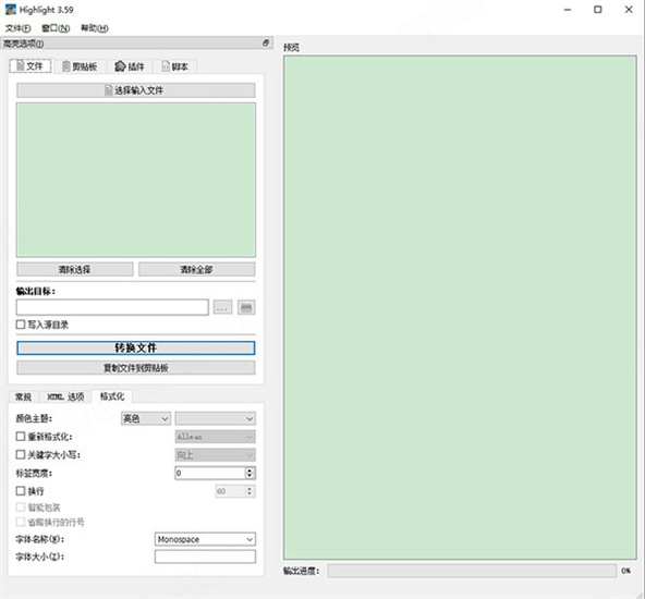 2、然后打开Highlight-适当勾选通用中的选项(选的是去掉文档头部和尾部的说明)-切换到格式化-选择自己喜欢的高亮主题和字体;
